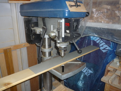 ![]() | 2×4の端材にボール盤で垂直に穴をあけて穴開け治具に。 |