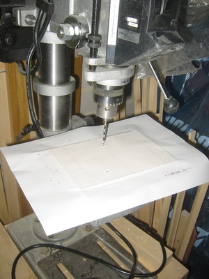 ![]() | 印刷した図面をカットしたアクリル板に貼って穴開け。ボール盤はブレもなく、しっかりとした穴が開けられます。大活躍! |