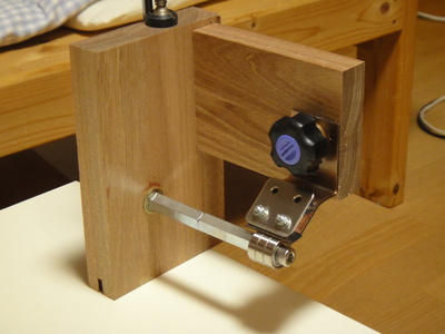 ![]() | カッターの刃を取付けてみました。 押え板の先端も斜めに削ってあります。 |