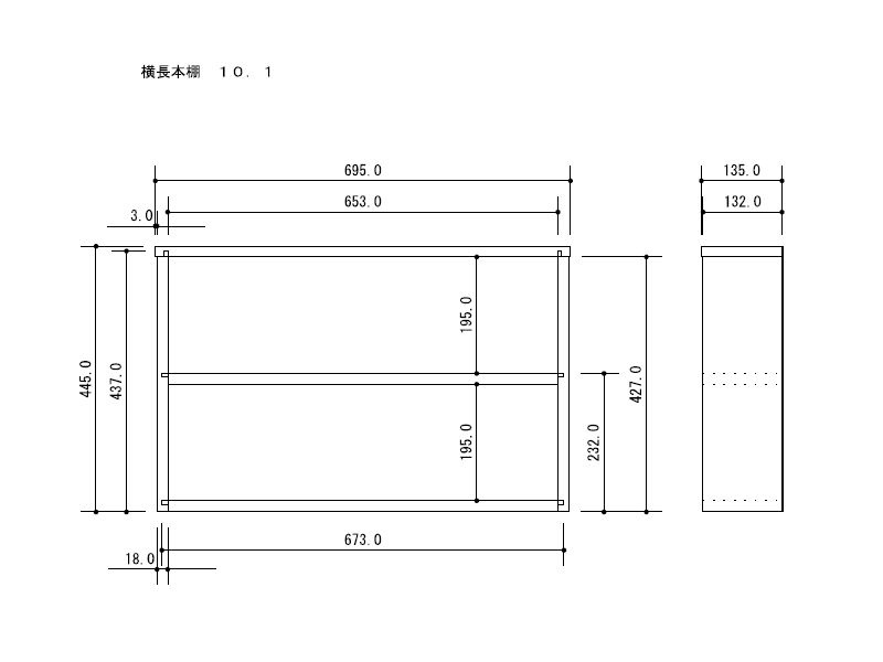 ![]() | 2014年6月30日 横幅がちょっと狭い雑貨棚をもう一台頼まれました。2台横に並べるとの事です。 図面です。クリックで大きくなります。 |